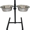 Our Adjustable Double Diners come in a choice of three bowl sizes complete with an adjustable stand making it easy for the owner to raise the height of the bowls to their pets requirements.