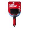 To use the slicker, slowly and gently brush the hair in the direction of the fur growth. The long plastic pins penetrate deep into the coat, gently detangling fur and removing loose hairs. The soft plastic pins have balled ends to ensure your dog is kept comfortable while being groomed. The shorter bristles smooth the top coat, gathering loose and dead hair to leave a neat and glossy coat. To ensure your dog has an enjoyable grooming session, start gently. Pause or end end the grooming session if your dog becomes agitated.