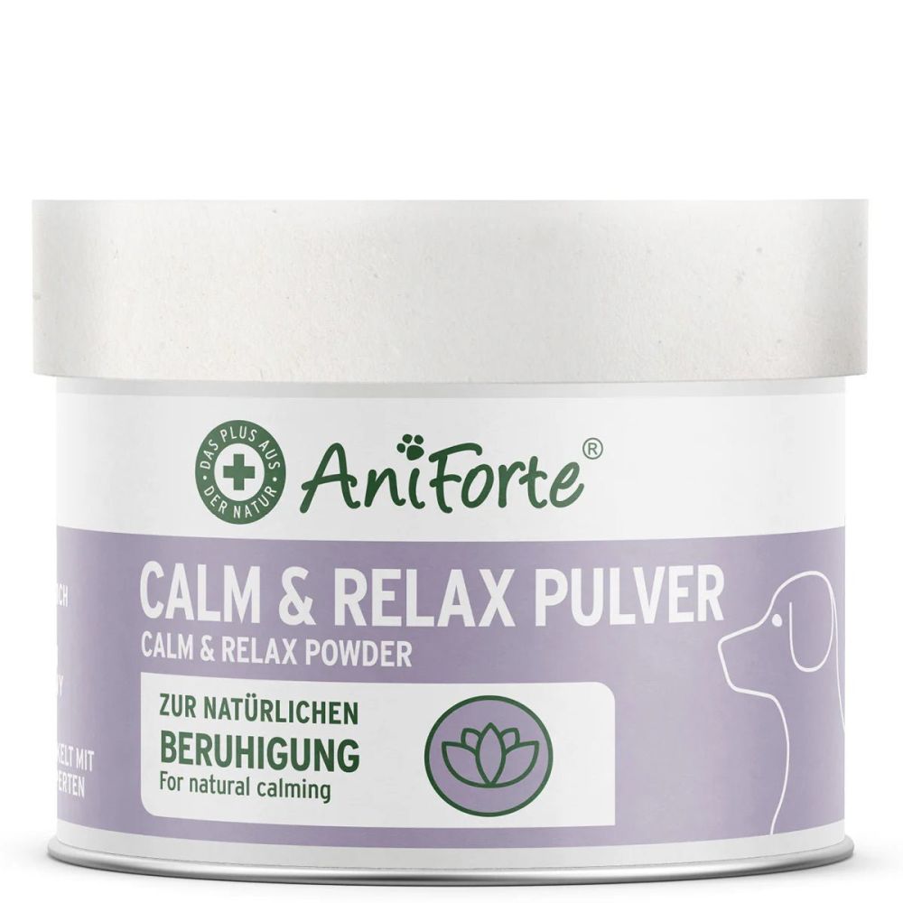 Calm & Relax Powder for Dogs is made from 100% natural unprocessed ingredients. It has been specifically developed to naturally soothe and calm your pet in times of stress and anxiety. Dogs are exposed to many different factors that can often have a negative influence on their behaviour and general mood. AniForte Calm & Relax for dogs is a blend of raw and pure herbs which helps calm your pet in times of stress, such as noisy and unfamiliar environments, post-illness recovery, medication side-effects or from the introduction of a new family member.