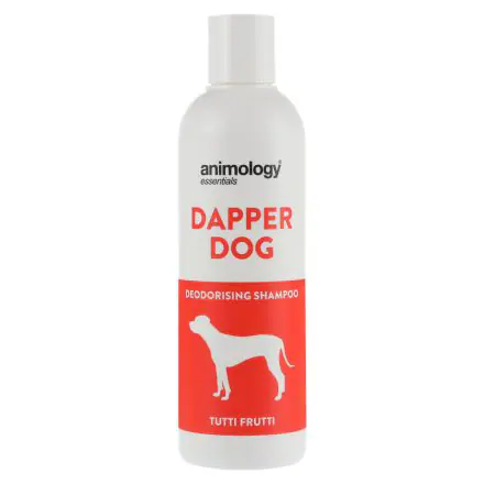 Animology Essentials Dapper Dog shampoo is a deodorising and conditioning dog shampoo. Suitable for use on all coats Built in conditioner Tutti Frutti scented Dapper Dog shampoo is a dog shampoo suitable for all breeds. Ideal for cleaning, deodorising and conditioning, Dapper Dog helps to keep your dog’s coat fresh and conditioned. It can be used on all coat types, and is suitable for all dogs from 6 weeks old.