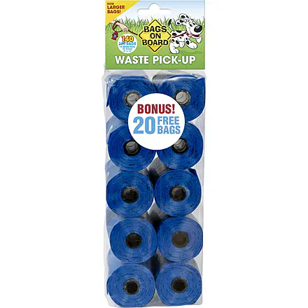 Bags on Board Blue Dog Waste Bags makes picking up your pet waste quick, simple, and easy whether you’re on a walk or in the backyard. Our dog poop bags are strong, durable, and 100% leak-proof guaranteed. Bags on Board poop bags are available in our classic blue color and refill and fit all Bags on Board dog waste bag dispensers, so you do not need to buy a new one.