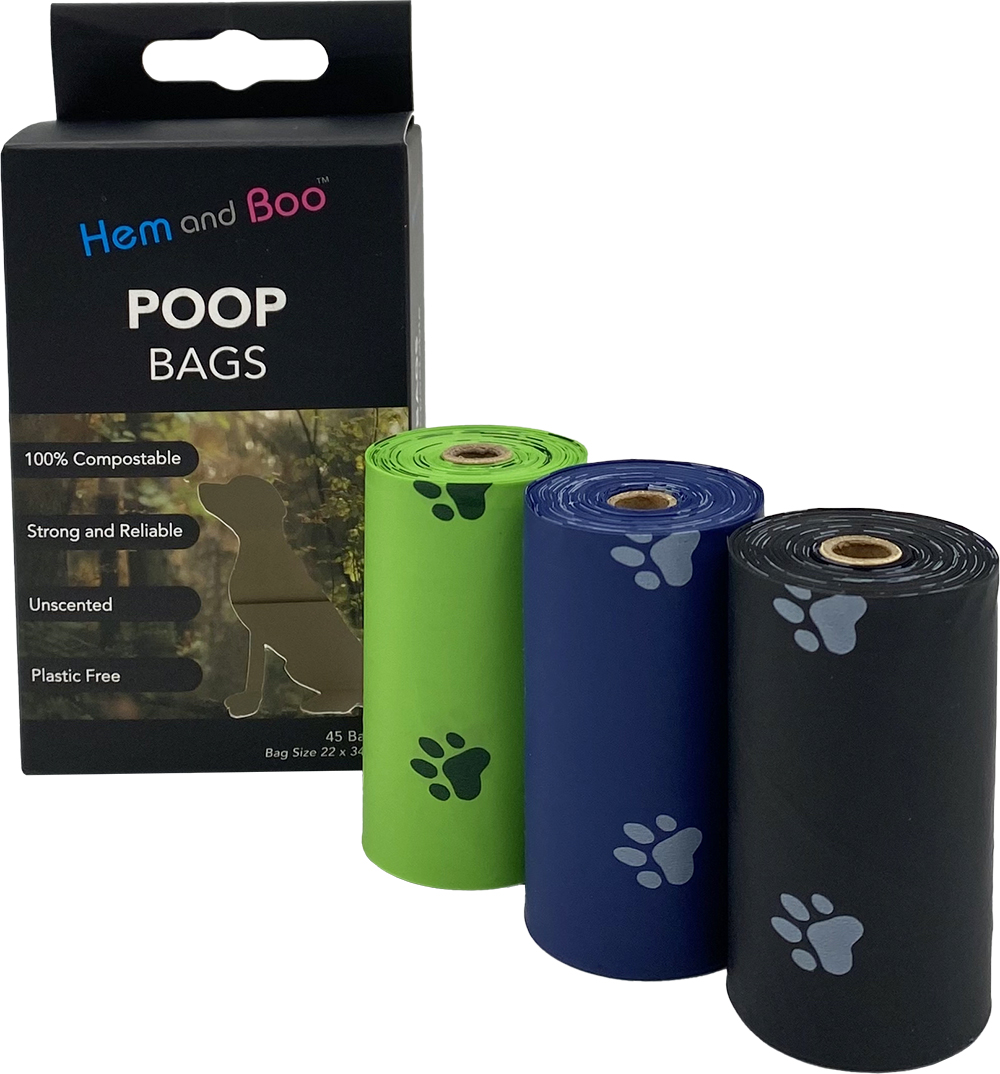 Our 100% compostable poop bags provide an eco-friendly and reliable solution for responsible dog owners. Each box contains 3 rolls of 15 bags, totalling 45 bags per box. The bags are durable and easy to use.