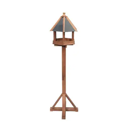 A delightful hexagonal slate roof bird table with plenty of feeding space makes a stunning garden feature. The height from the floor to the highest point is 163cm. The width of the bird table around the outer edges is 39cm.