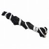 A large polypropylene mesh hay net with rings at the top and bottom.
