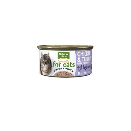 It’s never too early to feed your cat delicious, healthy, natural food. Natures Menu Especially for Cats can get your kittens off to the best start in life. This recipe is a delicious combination chicken and turkey cat food with salmon, will provide them with all the nutritious goodness they need to develop. Composition: Chicken* (38%), Chicken Broth (29.3%), Turkey* (26%), Salmon* (6%), Minerals (0.7%). *Natural ingredients. Analytical constituents: Protein 10%; Crude Fat 7%; Crude Ash 2%; Crude Fibre 0.2%; Moisture 80%. ADDITIVES/kg. Nutritional additives: Vitamin E: 30 mg, Taurine: 200 mg, Potassium Iodide: 0.2 mg (I: 0.15 mg), Manganese(II) Oxide: 2.1 mg (Mn: 1.63 mg), Zinc Sulphate Monohydrate: 10 mg (Zn: 3.64 mg).