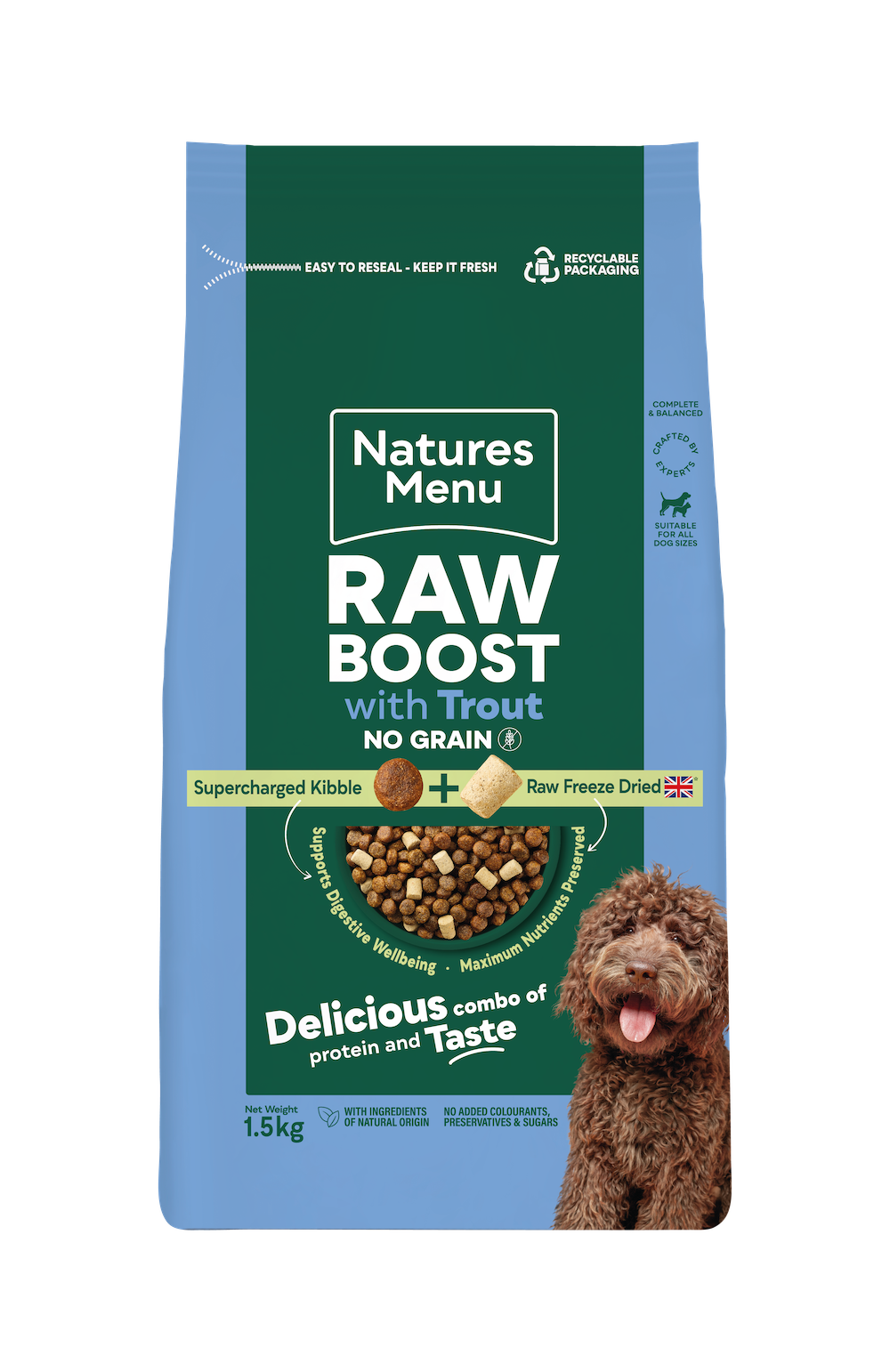 Natures Menu Raw Boost Trout + Fish Dog Kibble 1.5 kg (No GRAIN)