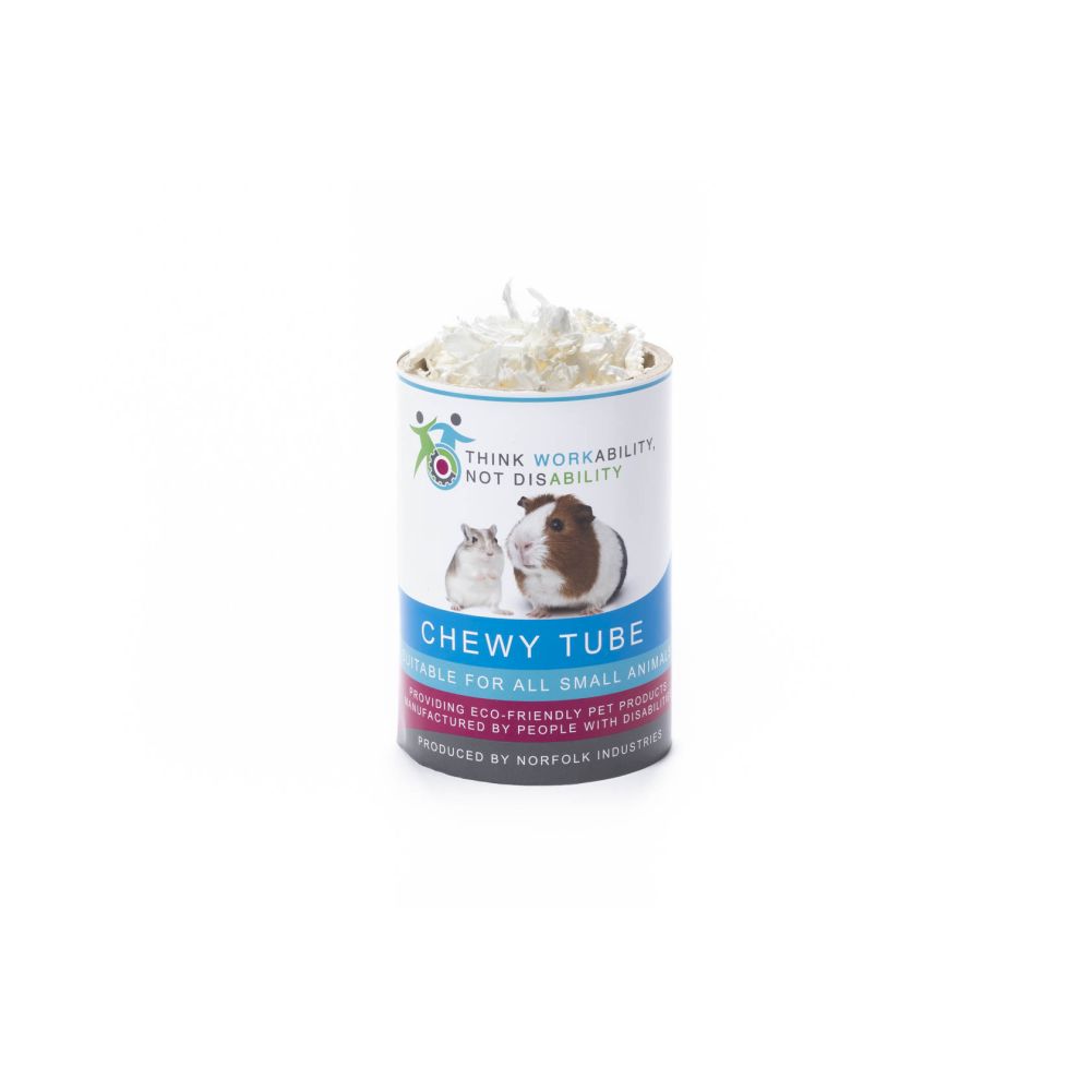 These robust chewable Chewy Tubes are designed to provide a nesting place with bedding material inside. They are suitable for hamsters, gerbils, mice and rats.? Filled with repurposed flaked paper. Compared to competitors, these tubes are extremely robust, lasting many days or weeks, even with the most enthusiastic gerbil! The cardboard tubes are from the food industry, they are suitable for ingestion with no harmful chemicals or toxins involved. Just labelled and shrink wrapped, the packaging is also kept to a minimum. Tube size – 76mm diameter x 125mm long.