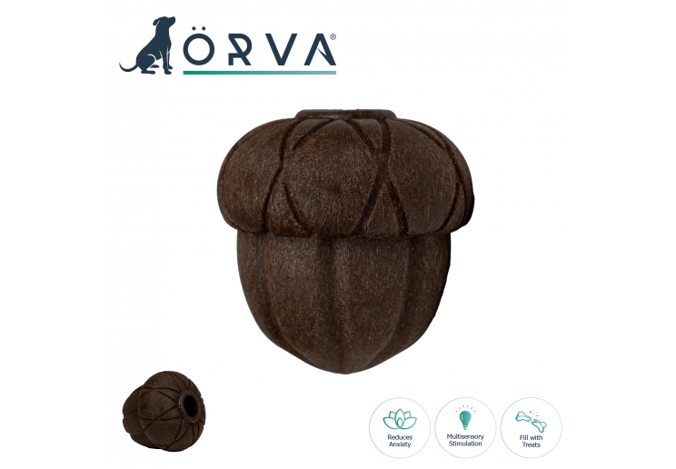 -?rva Acorn is a treat dispensing toy, can also have treat paste on the outer to keep your pet occupied for longer.