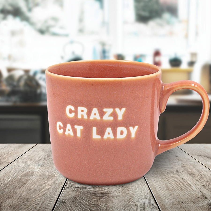 Brighten up your tea or coffee break with this pink mug, featuring a charming playful message “crazy cat lady”