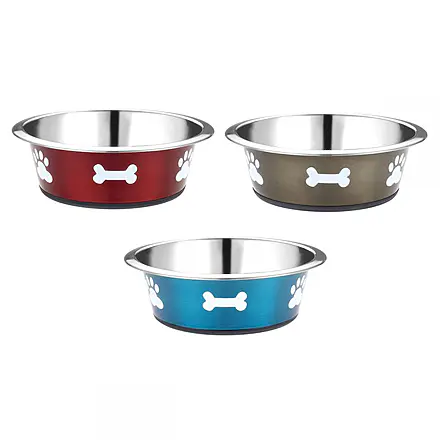 From Classic’s superb range of premium quality Stainless Steel dishes comes Classic’s Super Premium Posh Paws pet bowl range. As with all Classic’s Stainless Steel range, each dish is manufactured from the finest quality, heavy gauge stainless steel and features our unique fused on, rubber, non-slip rim; each bowl is stylishly finished with applied enamel design. Stainless steel does not absorb food odours and these dishes are not only hard wearing and stylish, but they are of course hygienic and dishwasher safe, they come in assorted contemporary colours, Red, Blue or Graphite. Our Posh Paws Medium dog dish is 215 mm in diameter with an inside depth of 70 mm, it has a capacity of 1.6 litres.