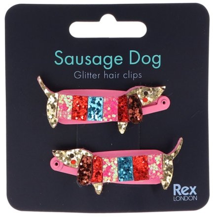 Sausage Dog glitter hair clips, Set 2