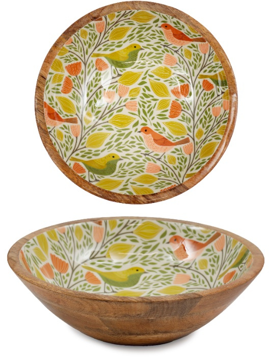 A stylish bowl featuring a songbird motif, bringing a nature-inspired charm to your dining collection.