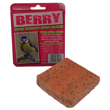 High energy suet, seed and berry mix.Perfect for all year round feeding. Attracts many species.Can be feed from any standard suet block feeder or simply place on the bird table.