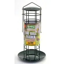 The Supa Premium Fat Ball Feeder is an all metal construction and has been specifically designed for the feeding of both netted and un-netted Fat Balls. The base tray acts as a supplementry feeding station and guards against debris falling to the ground with the potential to attract unwanted guests. Always site hanging feeder away from Nest Boxes and out of reach of potential predators. Always ensure a source of clean fresh water is available all year round. This feeder is a registered design of Supa Ltd both in the UK and Europe. UK Registered Design Number: 4027303 Community Registered Design Number: 002204503-0001.