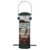 This versatile feeder is designed to cover all permutations associated with dispensing this popular food. It can be hung in the usual manner from a tree,washing line or hook. Also due to the design of the base, the feeder can be placed on a length of dowel driven into the ground. The scattering of mealworms on the large base tray acts as an intial attractant and subsequentley as a supplementry feeding station whilst also catering for those birds that prefer a flat feeding surface. This feeder is manufactured in the UK.