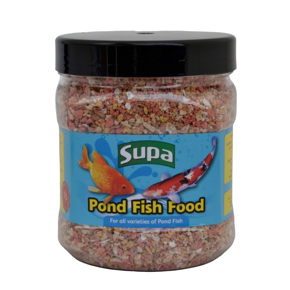 Supa Pond Food 235 grams (Pack of 1) is a complete food for all varieties of Pond Fish. The food is a cereal based product with shrimp, flaked rice, minerals and permitted colourants. Suitable for small to medium ponds. Comes in a recyclable jar to keep the pond food fresh. Made in the UK.