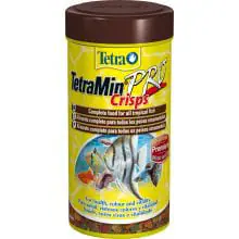 TetraMin New improved recipe for clean and clear water – guaranteed*. The new formula for “clear water” is proven to enhance the growth of fish, thanks to improved nutrient uptake. Since more nutrients are absorbed in the body, the amount of excrement produced by the fish is reduced. This has a positive effect on the water quality. reduces nitrate (-16%) reduces phosphate (-10%) The improved water quality reduces algae growth, ensuring clear water. Hence: the new TetraMin. It’s clearly better! Patented BioActive formula* strengthens resistance to disease, promoting health and longevity Easy dosage bottle with a dosage lid on 100 ml and 250 ml bottles Carefully selected mixture containing high-quality nutrients with vitamins, minerals and trace elements for a nutritious diet. EP 0848592 When used correctly, the new TetraMin considerably improves nutrient uptake and reduces the excrement produced by the fish (compared with the old TetraMin) – guaranteed. Complete food for all tropical fish. Thanks to the low-heat production process TetraMin Crisps are highly nutritious With Clean and Clear Water Formula Patented Active formula* maintains a healthy immune system For decreased water pollution and therefore reduced algae growth.