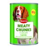Chunks in gravy with Beef A Complete Pet Food for Dogs. Composition: Meat and animal derivatives (4% beef), cereals, derivatives of vegetable origin, minerals. Additives/kg. Nutritional Additives: Vitamin A 2,250IU, Vitamin D3 328IU, Vitamin E 26mg, Zinc (Zinc Sulphate Monohydrate) 24mg, Iron (Iron (II) Sulphate Monohydrate) 12.5mg, Copper (Copper (II) Sulphate Pentahydrate) 2.5mg, Manganese (Manganous Sulphate Monohydrate) 2mg, Iodine (Calcium Iodate Anhderous) 0.45mg, Selenium (Sodium Selenite) 0.04mg. Protein 7%