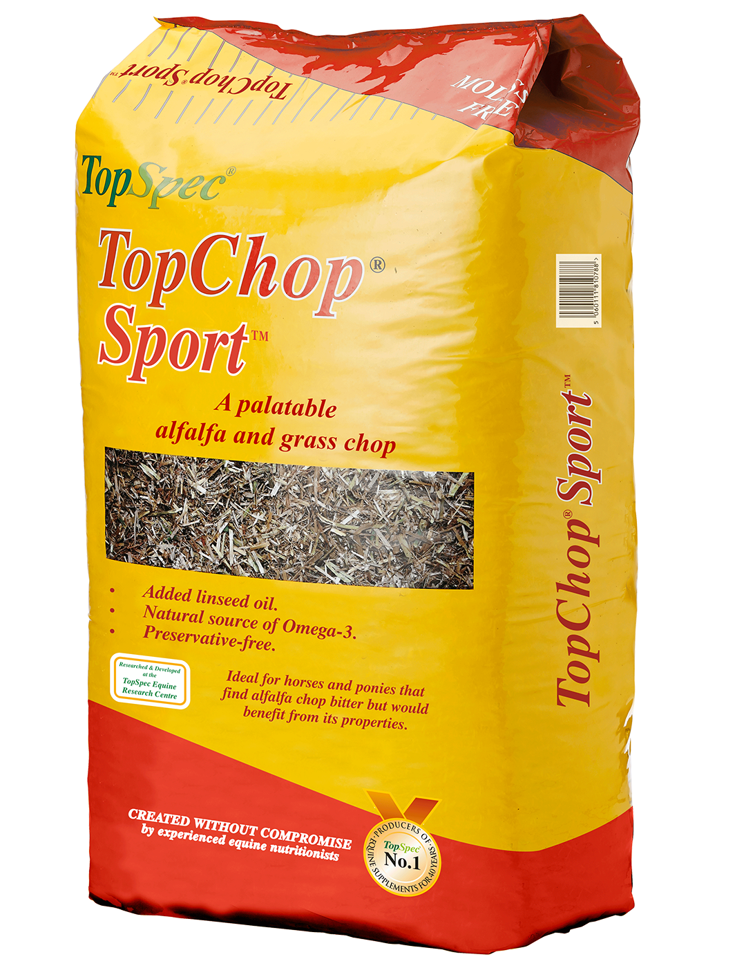 TopChop Sport is a natural product made from a mixture of British grass and British alfalfa, with a light dressing of cold-pressed linseed oil to minimise ?fly-away? and the loss of alfalfa and grass protein. TopChop Sport contains no added molasses or any other sugar coating.