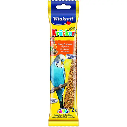 Vitakraft Krackers are designed to make your pet work for its treat. All krackers are baked three times on a natural wooden stick to ensure your budgie has plenty of nibbling satisfaction. The result is a feed that’s closer to the way budgies strip seed from grasses in the wild. Practical cage clip. Valuable vitamins. Functional varieties for common issues.