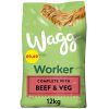 Wagg Worker Chicken is a complete dry dog food specifically formulated for all working and sporting breeds. With added B vitamins to help active dogs utilise all the energy available in the diet and packed full of all the protein and carbohydrates that working breeds require. Like all Wagg dry dog foods, Wagg Worker Chicken is free from any artificial colours or flavours. Ingredients: 26% Meat Meal & Gravy*(with min 5% Chicken**), Whole Grain Wheat, Whole Grain Barley, Vegetable Fibre, Maize, 2% Chicken Fat* (source of Omega 6), Whole Linseed (source of Omega 3), 2.3% Dried Whole Green Peas & Beet***, Minerals & Vitamins, Chicory Root (1000 mg/kg as a source of FOS), Yucca (150 mg/kg), *28% Meat Ingredients with Chicken & Veg*** equivalent per 100g kibble to:, *min 40g hydrated animal ingredients with, **min 18% Chicken, ***min 10g Vegetables from dried Peas and Beet.