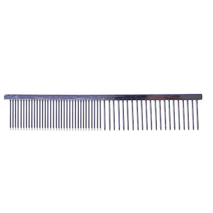 Steel Combination Comb ideal for combing through matts & tangles. Dual purpose comb features wide and narrow set teeth for coarse and fine hair. Strong teeth make light work of tough tangles. Suitable for all animal coats.